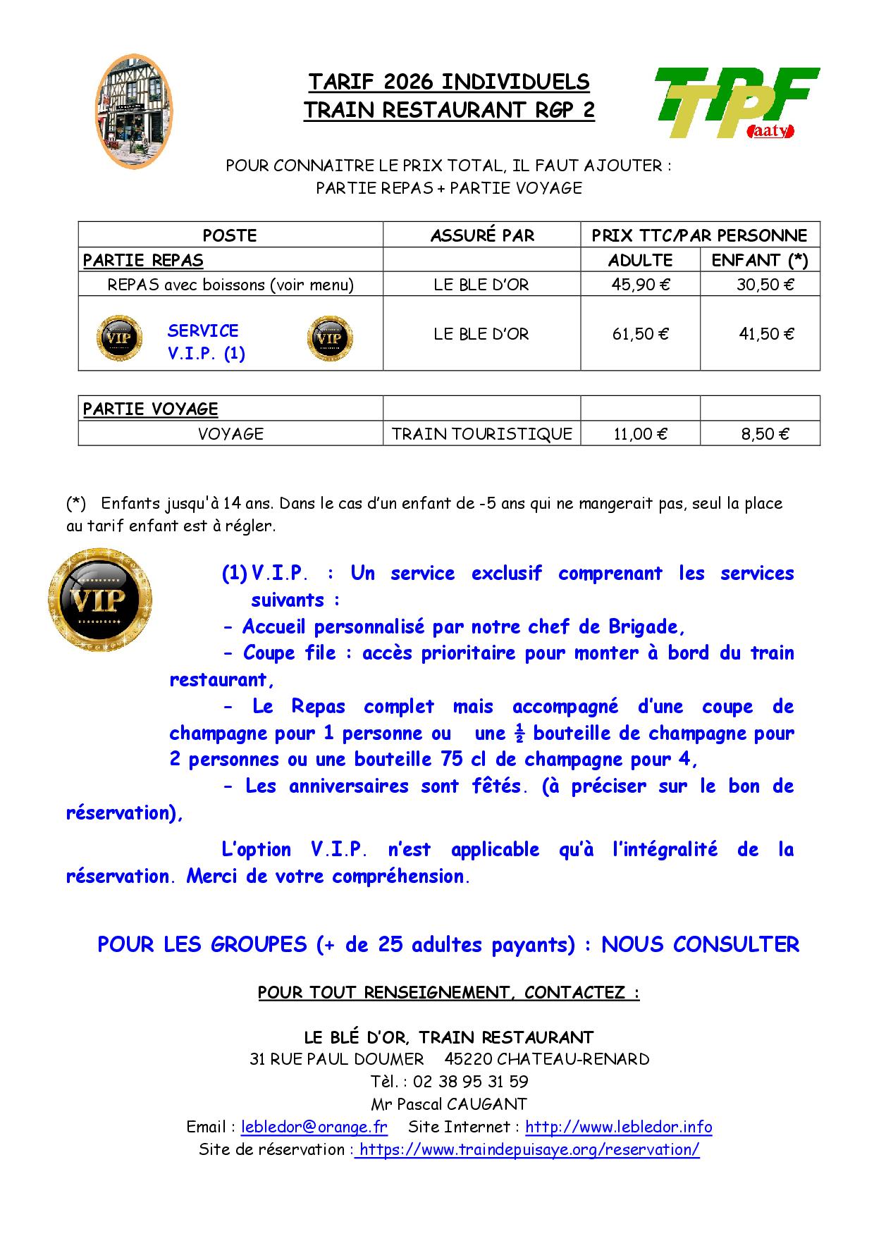 BIENVENUE SUR LA PAGE "INDIVIDUELS" TRAIN RESTAURANT POUR 2026